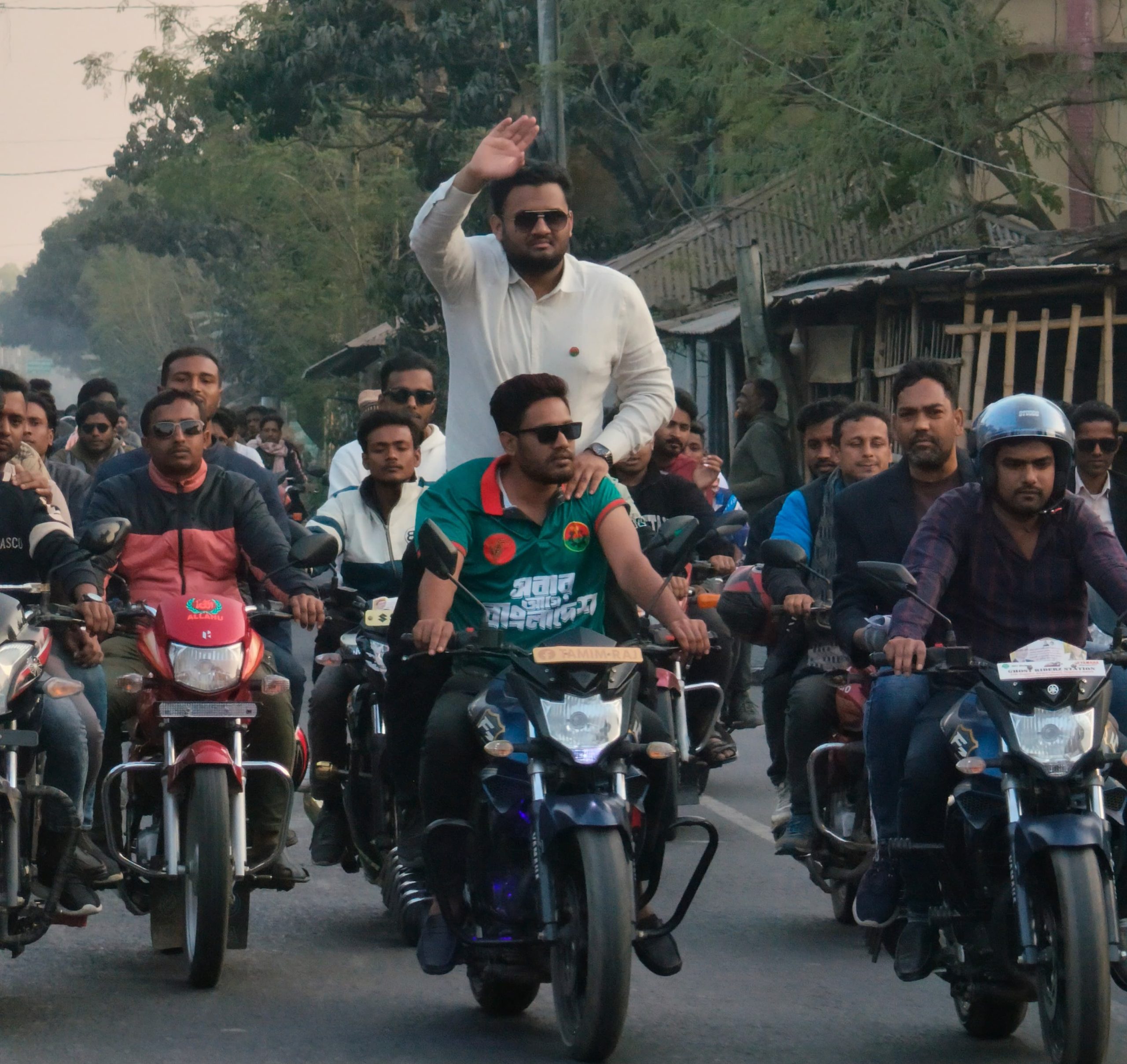চারঘাটে ধানের শীষের প্রার্থী আবু সাইদ চাঁদের পক্ষে ছাত্রদলের প্রচারণা